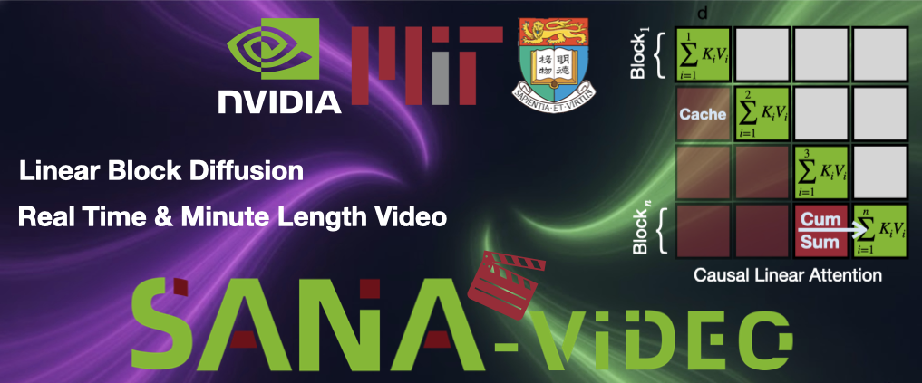 2026 SANA-Video: Efficient Video Generation with Block Linear Diffusion Transformer Junsong Chen*, Yuyang Zhao*, Jincheng Yu*, Ruihang Chu, and 16 more authors In ICLR 2026 Oral Website PDF Code LongLive: Real-time Interactive Long Video Generation Shuai Yang, Wei Huang, Ruihang Chu, Yicheng Xiao, and 8 more authors In ICLR 2026 Website PDF Code StreamDiffusionV2: A Streaming System for Dynamic and Interactive Video Generation Tianrui Feng, Zhi Li, Shuo Yang, Haocheng Xi, and 10 more authors In MLSys 2026 Website PDF Code 2025 Radial Attention: O(nlogn) Sparse Attention with Energy Decay for Long Video Generation Xingyang Li*, Muyang Li*, Tianle Cai, Haocheng Xi, and 10 more authors In NeurIPS 2025 Website PDF Code Sparse VideoGen2: Accelerate Video Generation with Sparse Attention via Semantic-Aware Permutation Shuo Yang*, Haocheng Xi*, Yilong Zhao, Muyang Li, and 10 more authors In NeurIPS 2025 Spotlight Website PDF Code Frame Context Packing and Drift Prevention in Next-Frame-Prediction Video Diffusion Models Lvmin Zhang, Shengqu Cai, Muyang Li, Gordon Wetzstein, and 1 more author NeurIPS 2025 Spotlight Website PDF Code Sparse VideoGen: Accelerating Video Diffusion Transformers with Spatial-Temporal Sparsity Haocheng Xi*, Shuo Yang*, Yilong Zhao, Chenfeng Xu, and 10 more authors In ICML 2025 Website PDF Code SANA 1.5: Efficient Scaling of Training-Time and Inference-Time Compute in Linear Diffusion Transformer Enze Xie*, Junsong Chen*, Yuyang Zhao, Jincheng Yu, and 10 more authors In ICML 2025 Website PDF Demo Code STORM: Token-Efficient Long Video Understanding for Multimodal LLMs Jindong Jiang*, Xiuyu Li*, Zhijian Liu, Muyang Li, and 12 more authors In ICCV CLVL 2025 Website PDF SVDQuant: Absorbing Outliers by Low-Rank Components for 4-Bit Diffusion Models Muyang Li*, Yujun Lin*, Zhekai Zhang*, Tianle Cai, and 6 more authors In ICLR 2025 Spotlight Website PDF Demo Code Sana: Efficient High-Resolution Image Synthesis with Linear Diffusion Transformer Enze Xie*, Junsong Chen*, Junyu Chen, Han Cai, and 7 more authors In ICLR 2025 Oral Website PDF Demo Code Deep Compression Autoencoder for Efficient High-Resolution Diffusion Models Junyu Chen*, Han Cai*, Junsong Chen, Enze Xie, and 5 more authors In ICLR 2025 Website PDF Code 2024 Condition-Aware Neural Network for Controlled Image Generation Han Cai, Muyang Li, Zhuoyang Zhang, Qinsheng Zhang, and 2 more authors In CVPR 2024 Website PDF Code DistriFusion: Distributed Parallel Inference for High-Resolution Diffusion Models Muyang Li*, Tianle Cai*, Jiaxin Cao, Qinsheng Zhang, and 6 more authors In CVPR 2024 Highlight Website PDF Blog Code 2022 Efficient Spatially Sparse Inference for Conditional GANs and Diffusion Models Muyang Li, Ji Lin, Chenlin Meng, Stefano Ermon, and 2 more authors In T-PAMI & NeurIPS 2022 Website PDF Slides Video Code Lite Pose: Efficient Architecture Design for 2d Human Pose Estimation Yihan Wang, Muyang Li, Han Cai, Wei-Ming Chen, and 1 more author In CVPR 2022 PDF Slides Video Code 2020 GAN Compression: Efficient Architectures for Interactive Conditional GANs Muyang Li, Ji Lin, Yaoyao Ding, Zhijian Liu, and 2 more authors In T-PAMI & CVPR 2020 Website PDF Slides Video Code